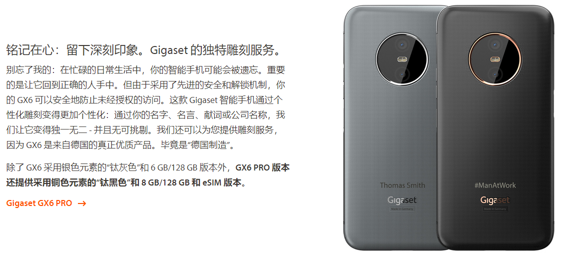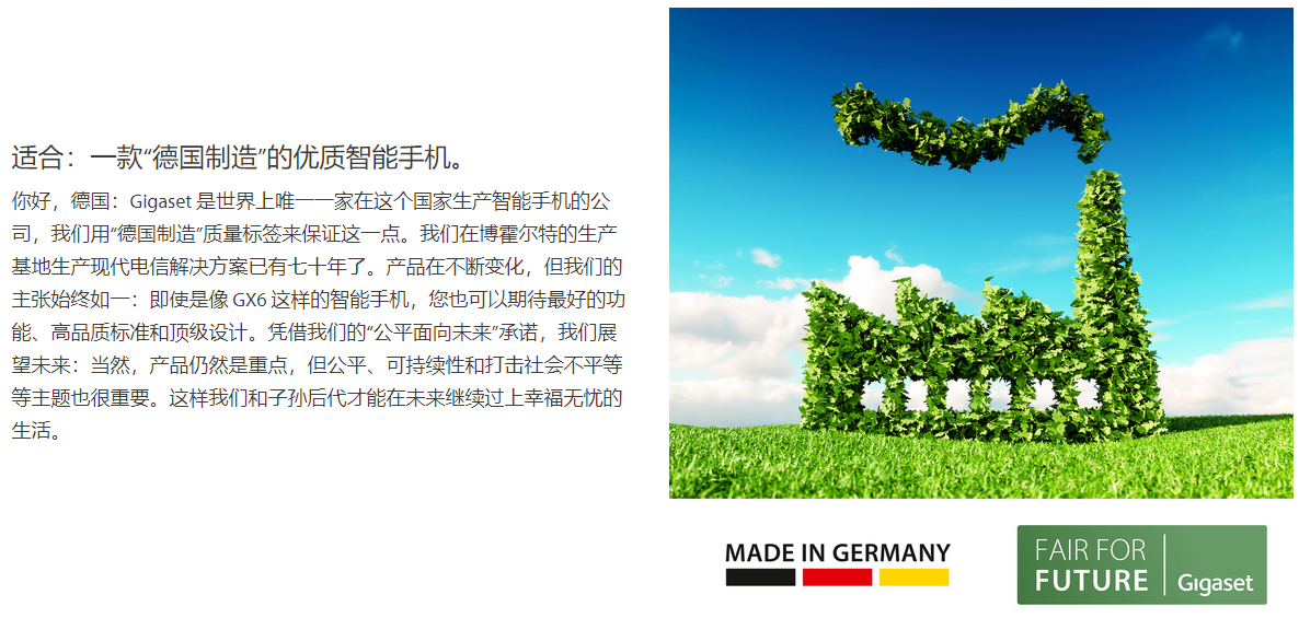我们亦是世界上唯一一家德国制造智能手机的公司。在人与人之间的通信方面拥有数十年的经验。作为通信专家,我们将这种专业知识扩展到我们的智能手机。在 Gigaset,您无需签订合同即可以非常好的性价比获得功能强大的户外智能手机和老年智能手机。即使您在旅途中,也能受益于 Gigaset 的高质量标准。 为了保护您的智能手机,我们为所有设备提供相应的配件。