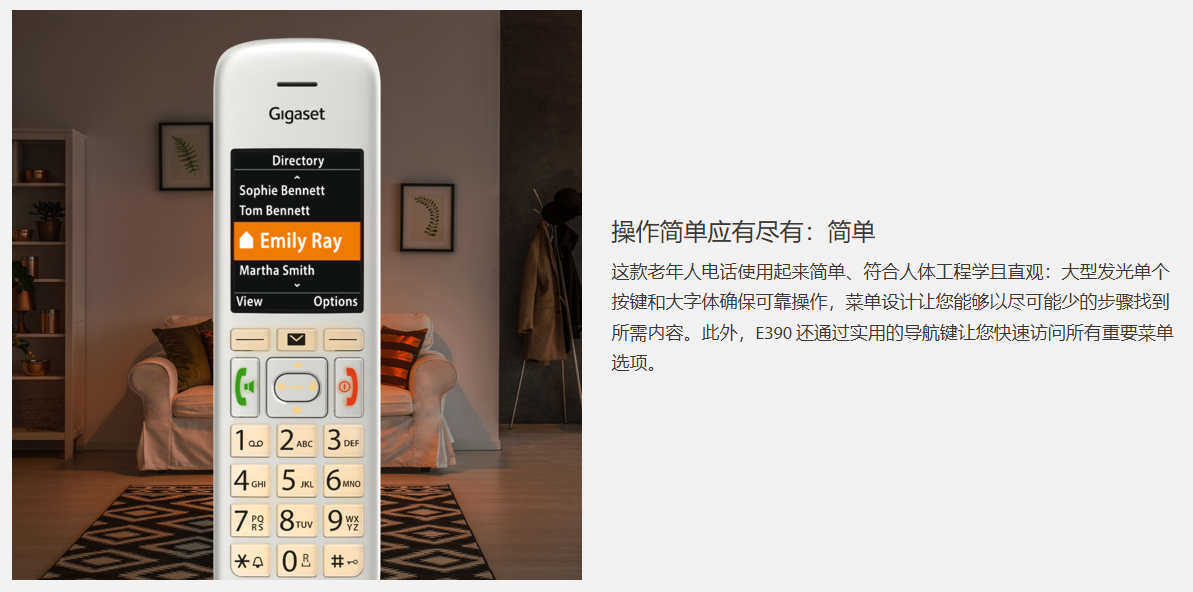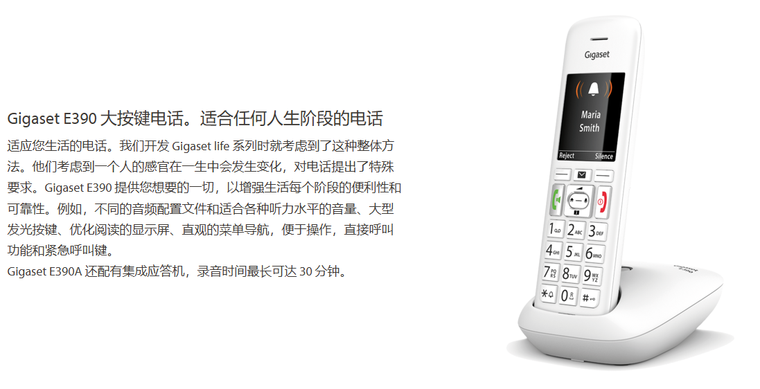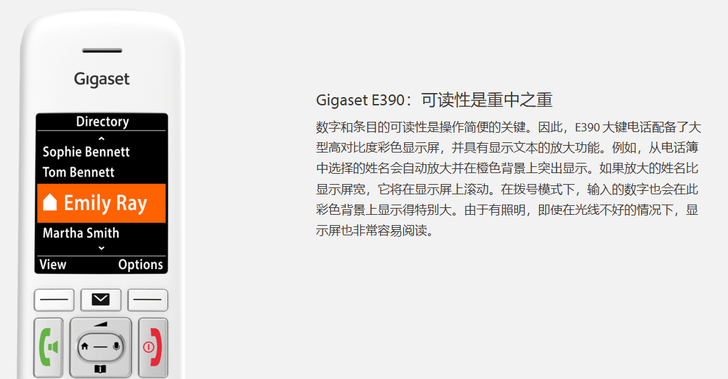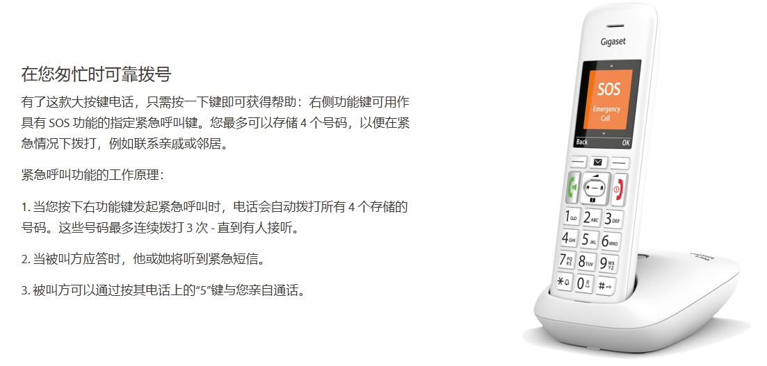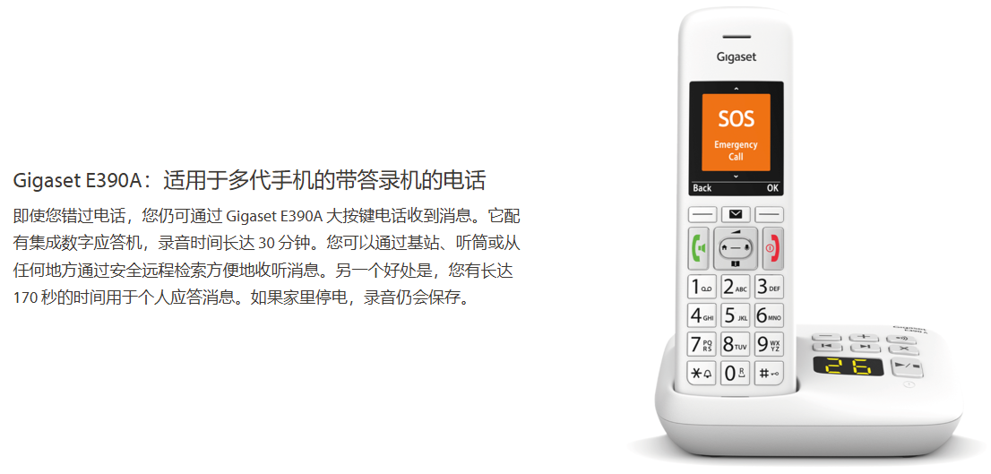 Gigaset是欧洲固定电话领域的市场领导者。无论是您自己工作场所的无绳电话或网络电话还是适合祖母的老人电话—更大的按钮、双倍音量、大字体、请勿打扰或特殊的紧急呼叫按钮。您总能在 Gigaset 系列中找到合适的型号。从简单的有绳电话到高端产品,我们始终采用最新技术开发固定电话,并牢记人们的个性化需求—附加手机、配件、备件。